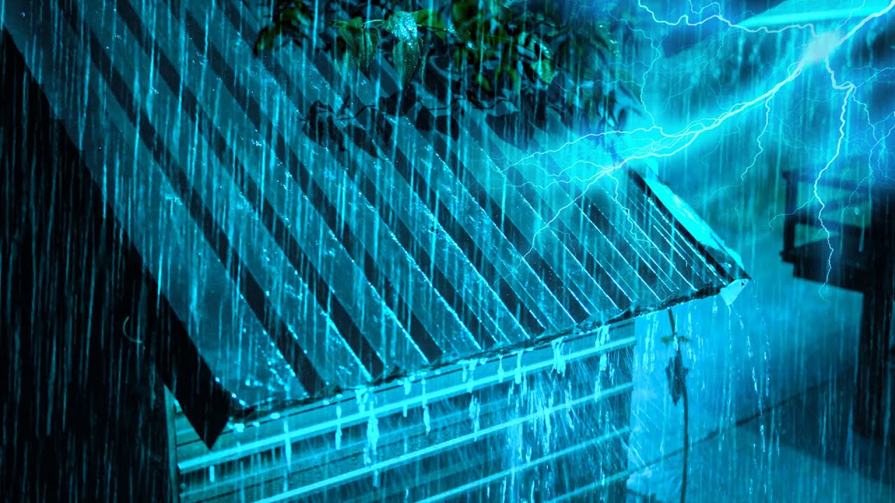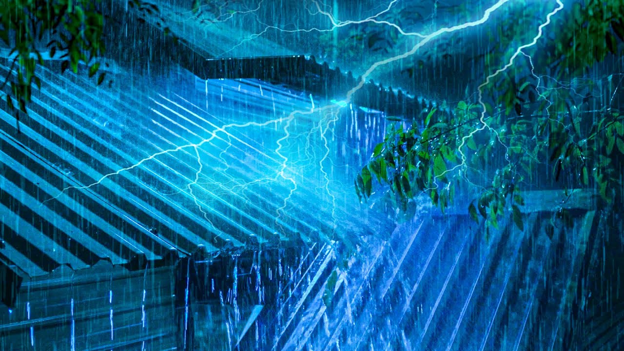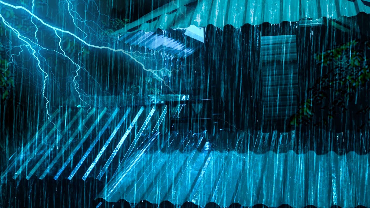Goodbye Sadness to Sleep Instantly with Heavy Rain & Alarming Thunder Sounds on a Tin Roof at Night.