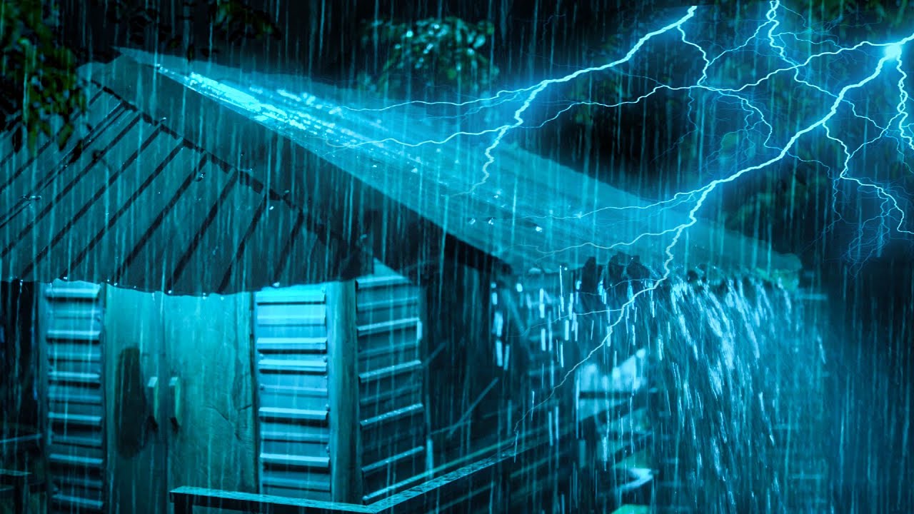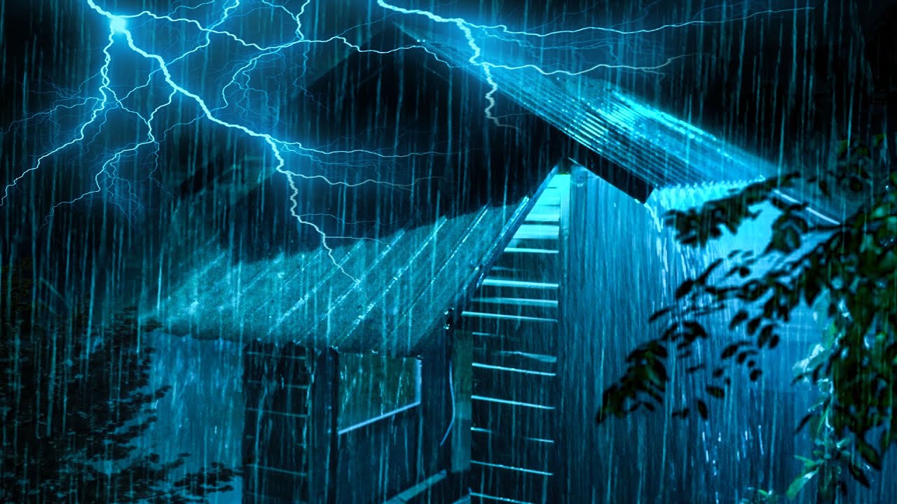 Defeat Stress to Sleep Instantly with Torrential Rain & Terrible Thunder Sounds on Tin Roof at Night