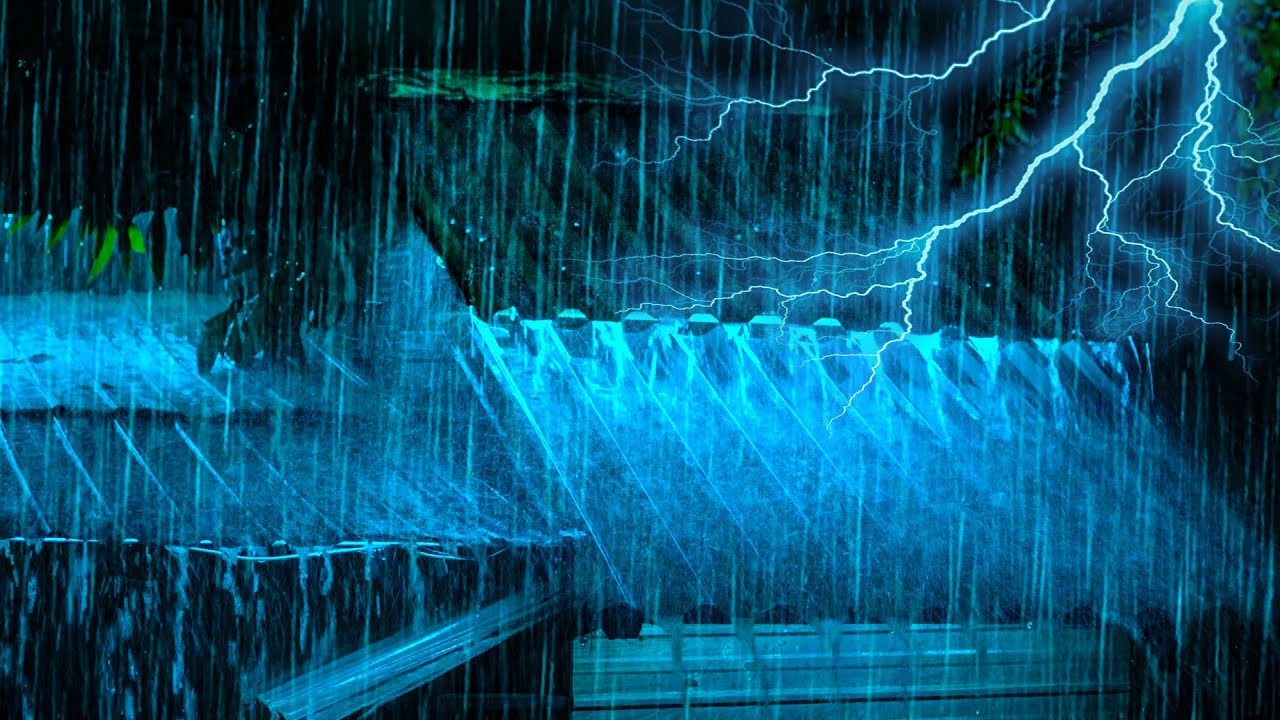 Overcome Anxiety to Sleep Soundly with Powerful Rain and Thunder on Tin Roof in Forest at the Night