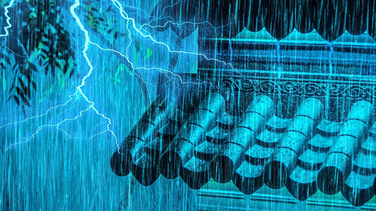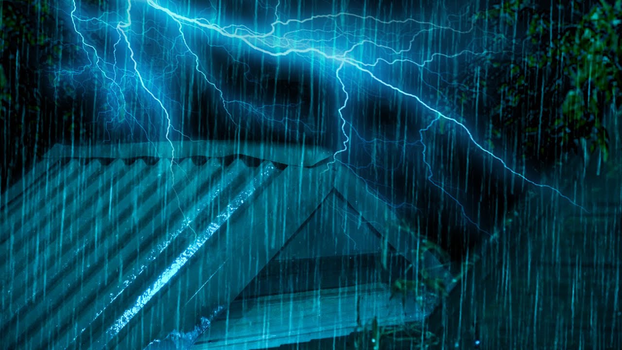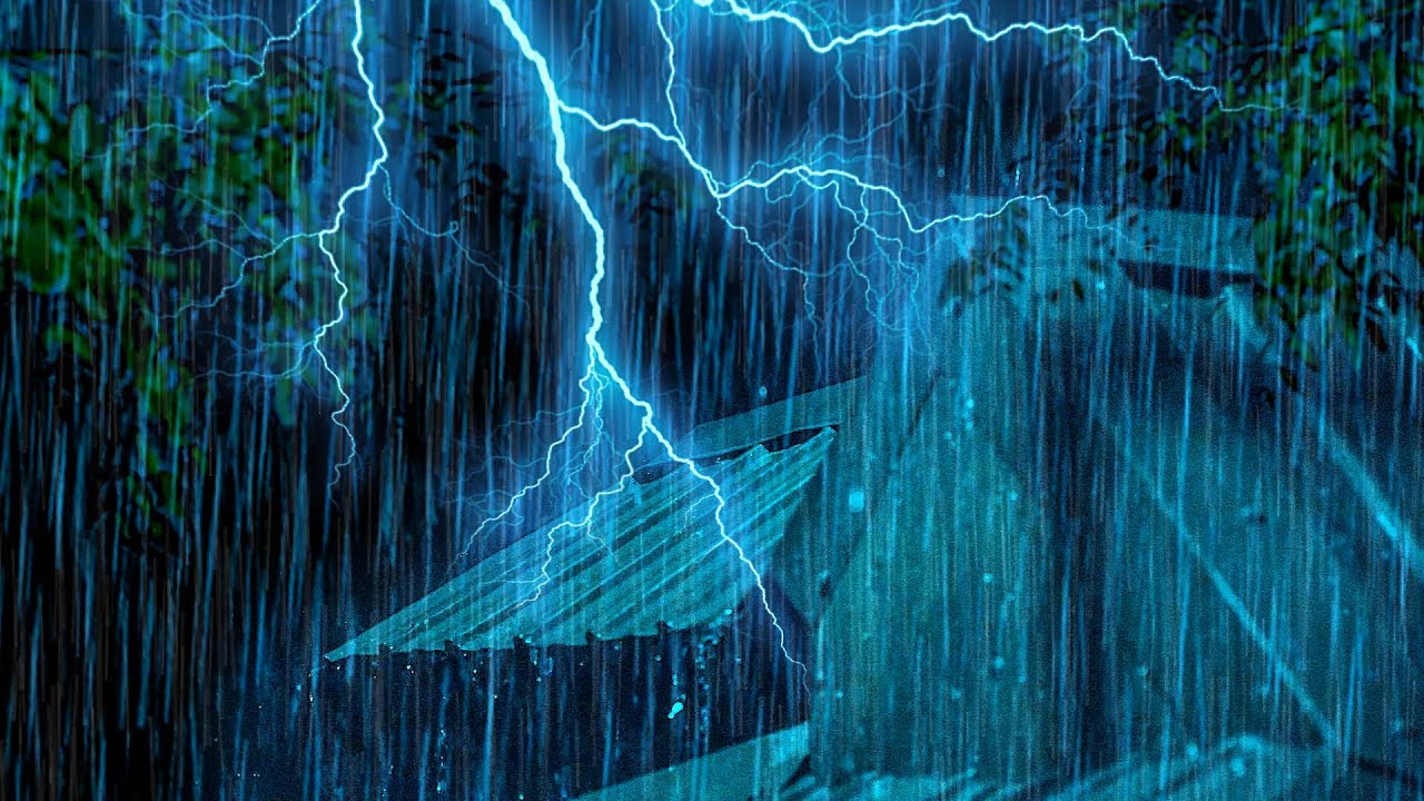 Overcome Insomnia Instantly with Real Hurricane, Powerful Rain, Thunder Sounds on Tin Roof at Night