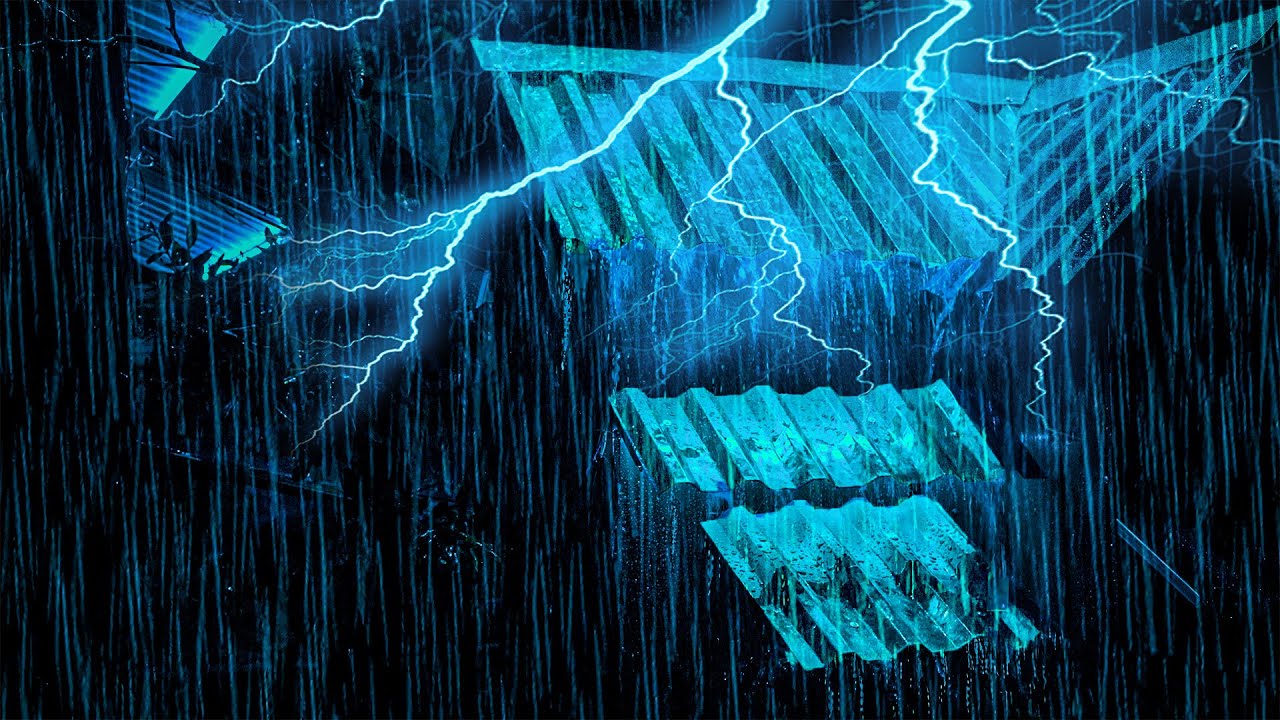 Relieve & Goodbye Stress with Hurricane, Heavy Rain, Wind and Thunder on a Tin Roof at Stormy Night