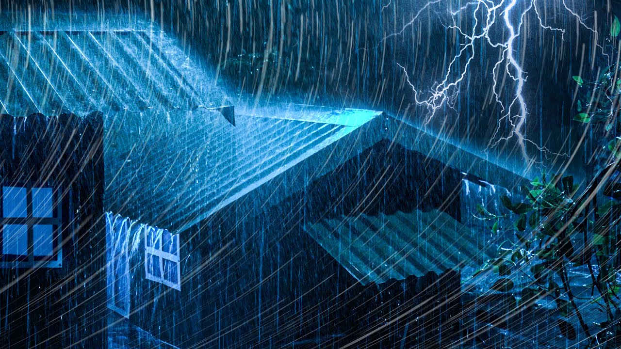 3 Hours of Heavy Rain and Thunderstorm Sounds on a Metal Roof to Fall Asleep Fast and Calm the Mind